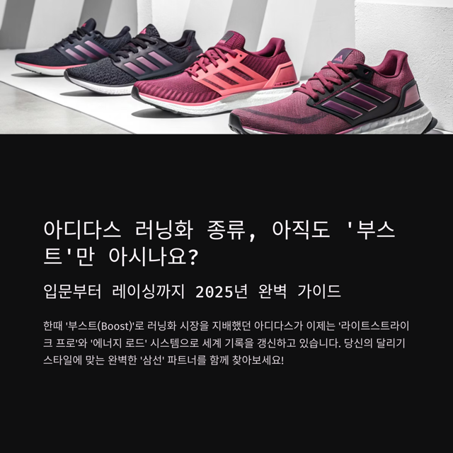 아디다스 러닝화 종류, 아직도 ‘부스트’만 아시나요? (입문부터 레이싱까지 2025년 완벽 가이드)